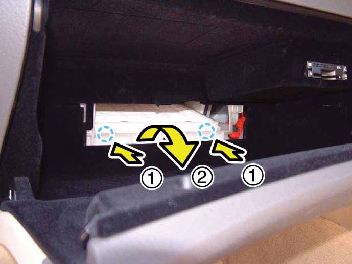 | 交換方法 →詳しい交換方法はこちら | グローブボックス内に取り付けられています。簡単に交換できます。(一部車種では道具が必要となります) | |